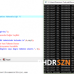 - 0-100 arasında üretilen bir sayının tahmin edilmesini ve kaçıncı tahminde bulunduğunu bulan programın kodları;