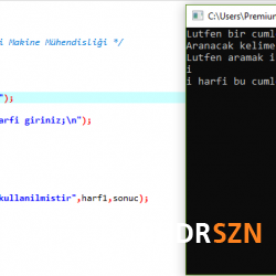 - Dışarıdan girilen bir cümle içerisinde yine dışarıdan girilen bir harfin kaç tane olduğunu bulan programın kodları;