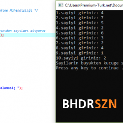 - Sabit bir dizi içerisinde bulunan 10 sayıyı büyükten küçüğe sıralayan programın kodları;