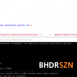 - Klavyeden girilen 3x3 matrisinin determinantını alan programın kodları;