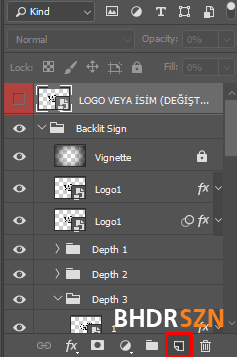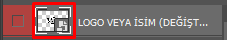 Dosyayı açın > "LOGO VEYA İSİM (DEĞİŞTİR)" layerine sol penceresine 2 defa tıklayın